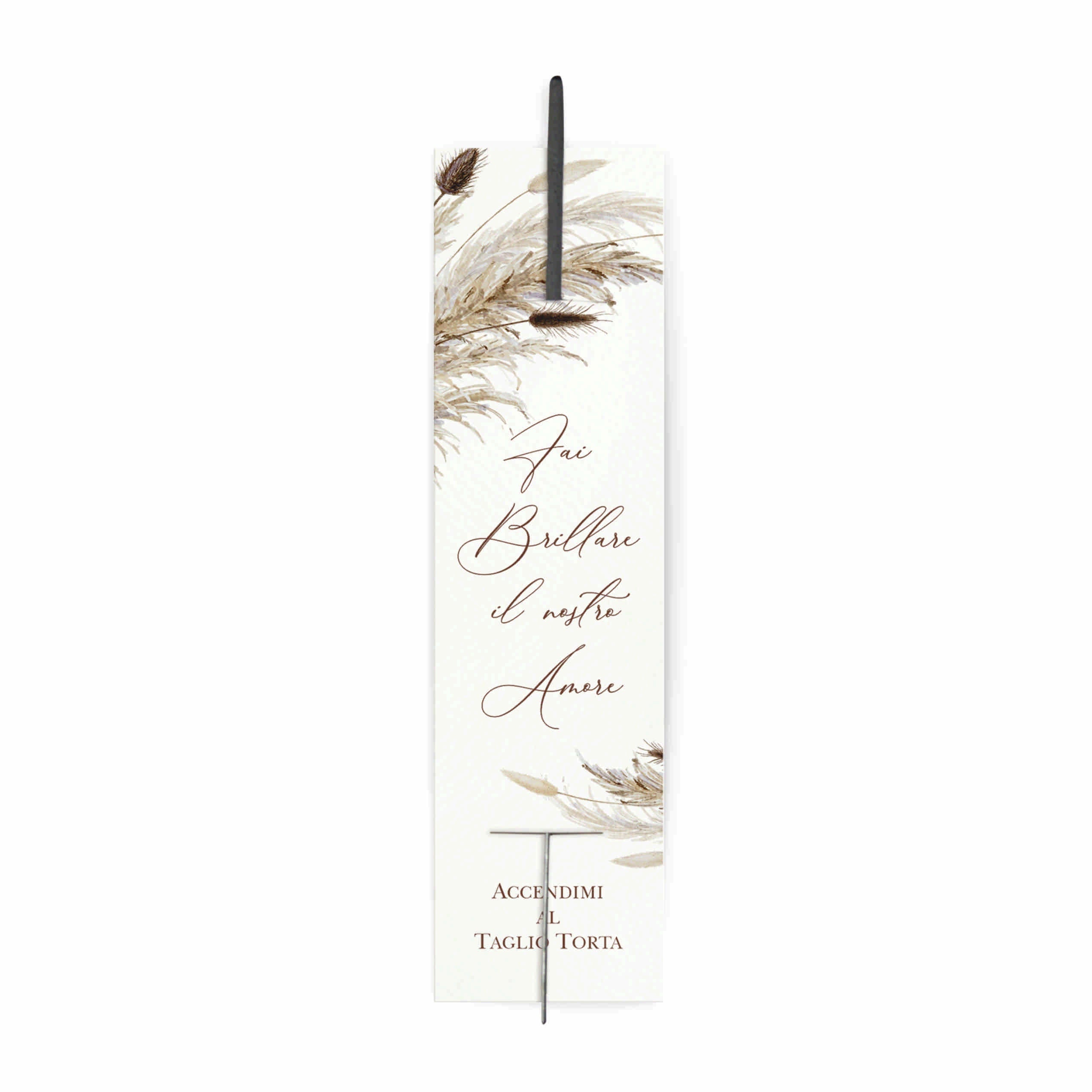 Scintille matrimonio cartoncino per stella filante personalizzato, in coordinato con la partecipazione modello F1746 stile shabby chic tema grafico pampas.