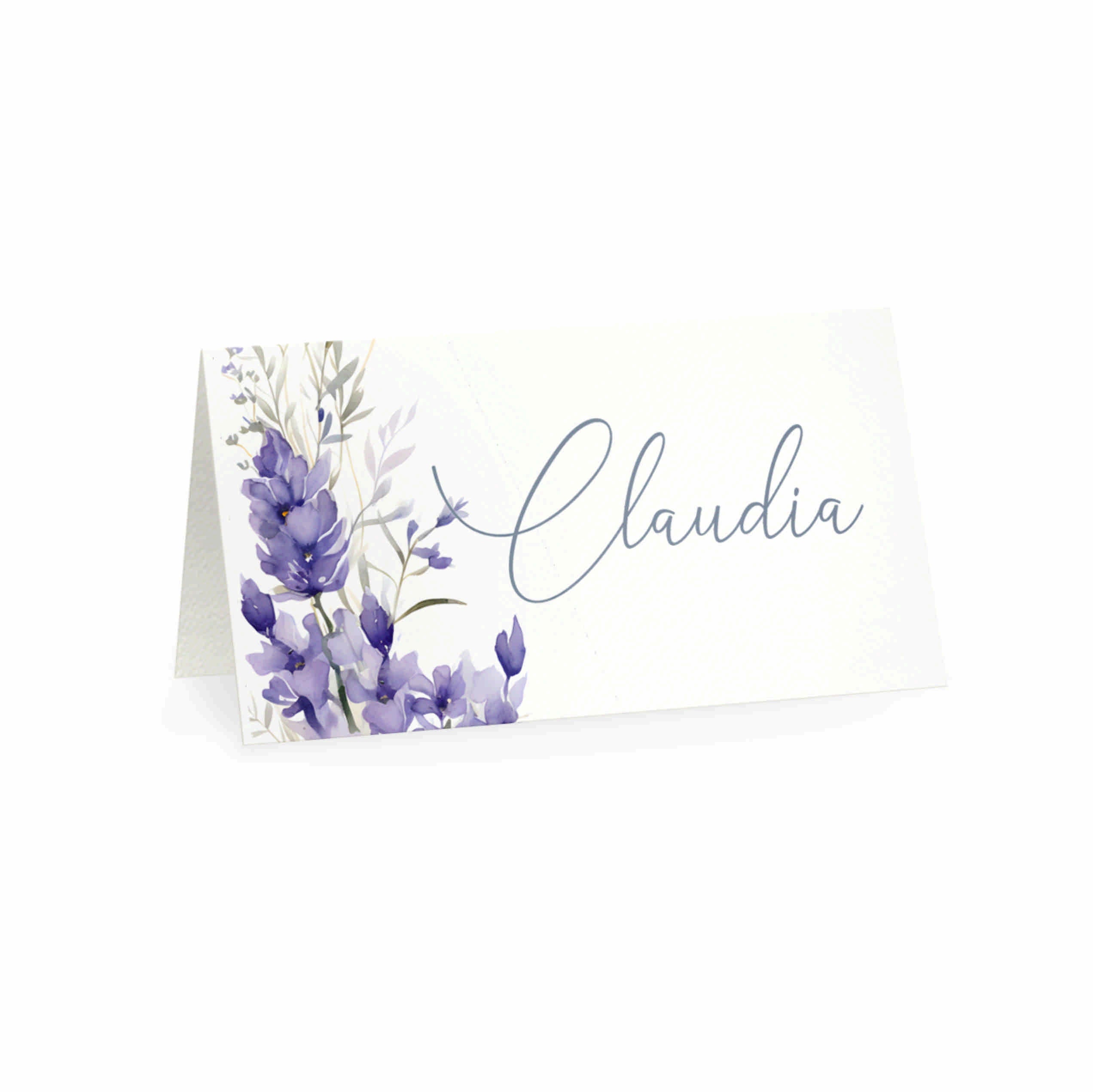 Segnaposto matrimonio personalizzato nome invitato abbinato al modello F1750 stile provenzale, Tema grafico decoro floreale Lavanda