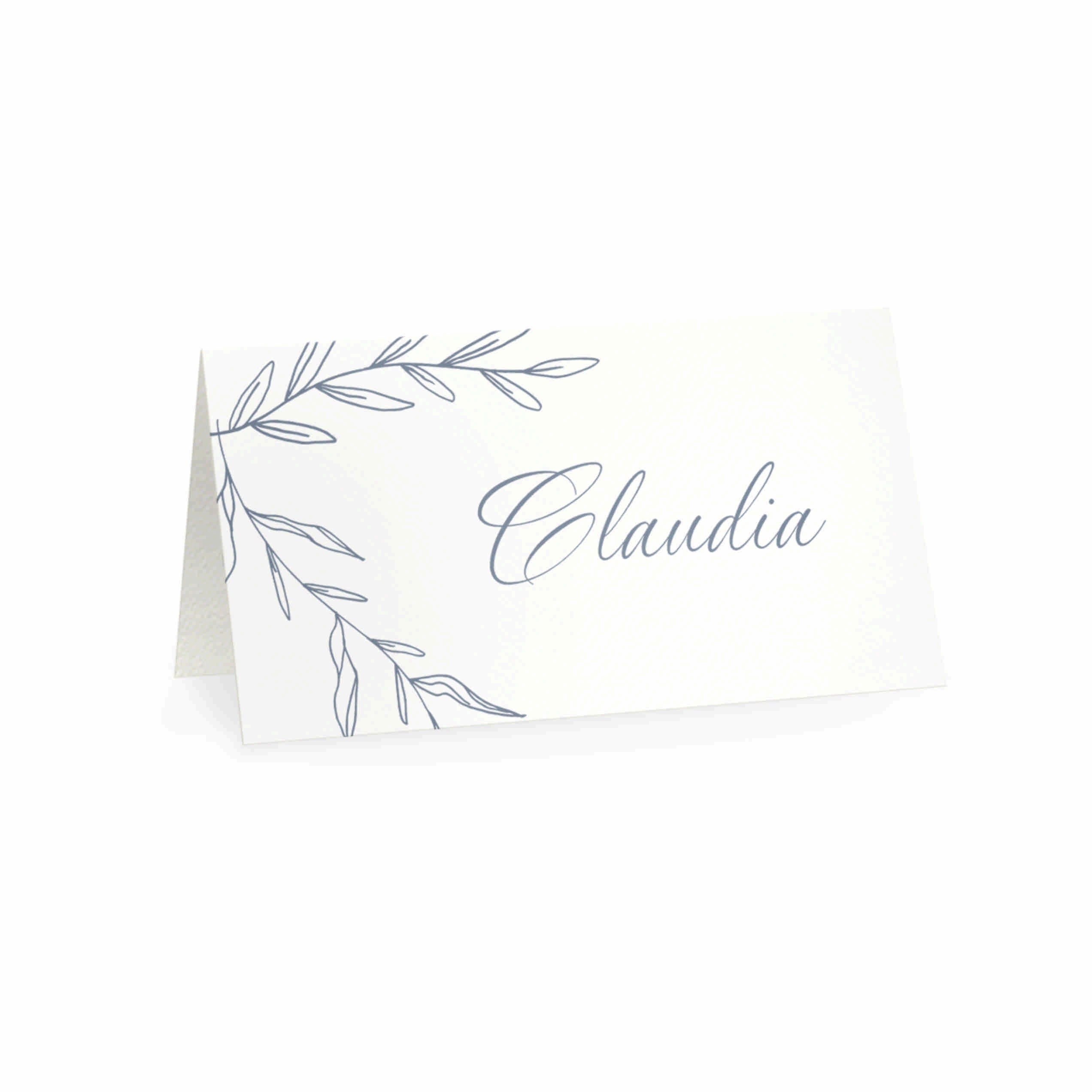 Segnaposto matrimonio personalizzato nome invitato abbinato al modello F1753 Tema grafico decoro celeste polvere.