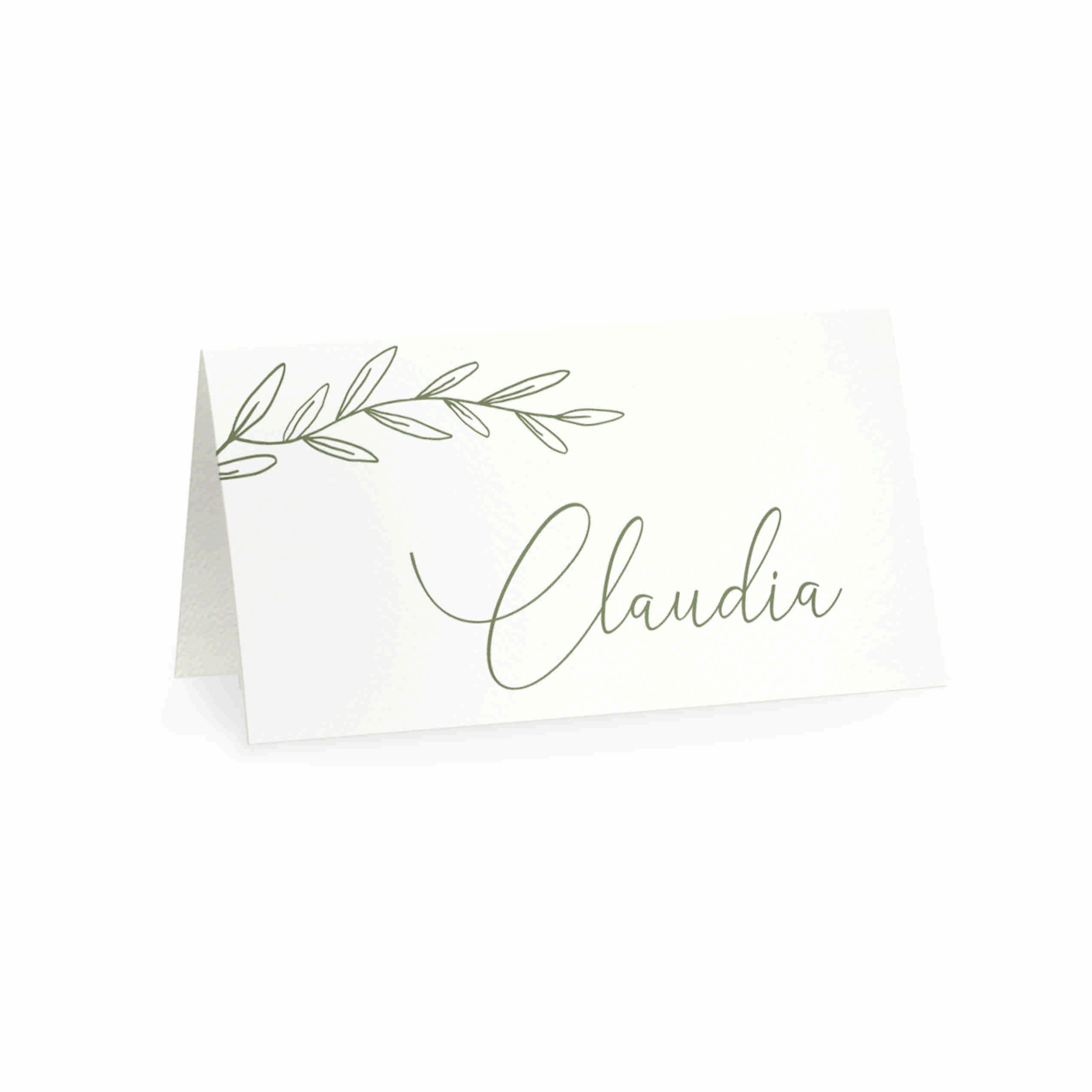 Segnaposto matrimonio personalizzato nome invitato abbinato al modello F1756 shabby chic con stile grafico con stampa decoro verde